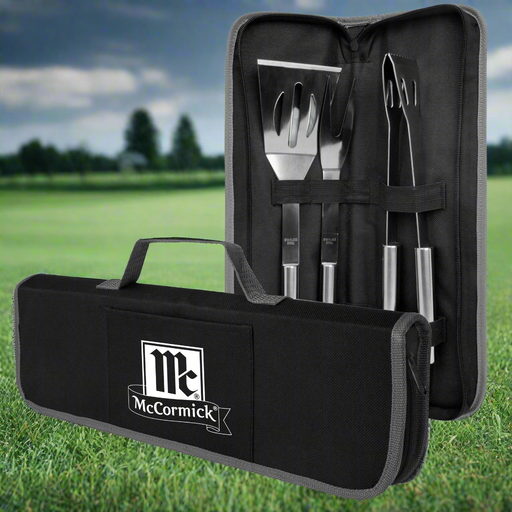 View full detailsCustom Logo 3 Piece Grilling Set.Stainless steel grill tools packed in a durable 600D case with a zippered closure and front pocket for imprint. To...